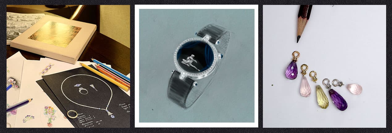 Мы внимательно слушаем вас и с уважением относимся к срокам. Думаем о конечном результате на каждом этапе работы, предлагаем и обсуждаем варианты. Художник нарисует эскиз, конструктор смоделирует изделие, а геммолог подберет для вас тот самый камень.